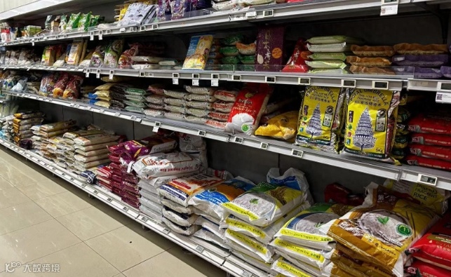 新加坡作为一个城邦国家,不生产粮食,所有大米都是进口的。货架上摆满了来自不同国家的进口米,规格多样,通常有5公斤、10公斤和20公斤包装,也有小至2公斤的包装。