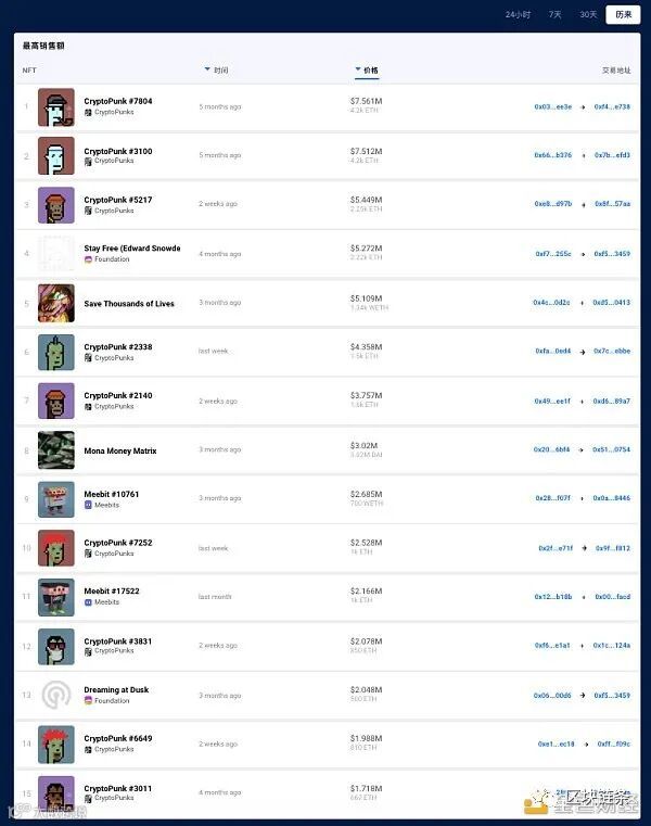 历史上交易价格最高的NFT 数据来源:dappradar