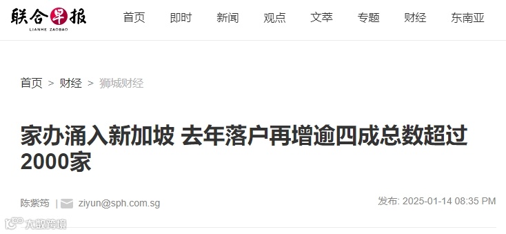 特别值得注意的是,获得新加坡金融管理局(金管局)颁发税务优惠的单一家办数目从2023年底的1400个迅速增加至2024年底的超过2000个,一年内增加了600个,增长率高达42.9%。