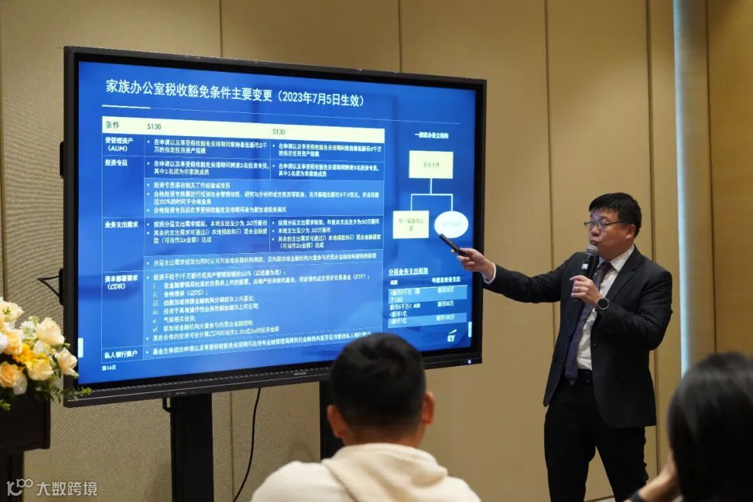 安永合伙人许书鸣先生首先带来了“企业国际化与财富传承/家族办公室合规与税务”的主题分享。许先生从全球税务前沿视角出发,深入剖析了企业国际化过程中的税务挑战与应对策略,以及家族办公室在财富传承中的重要作用和合规要求。