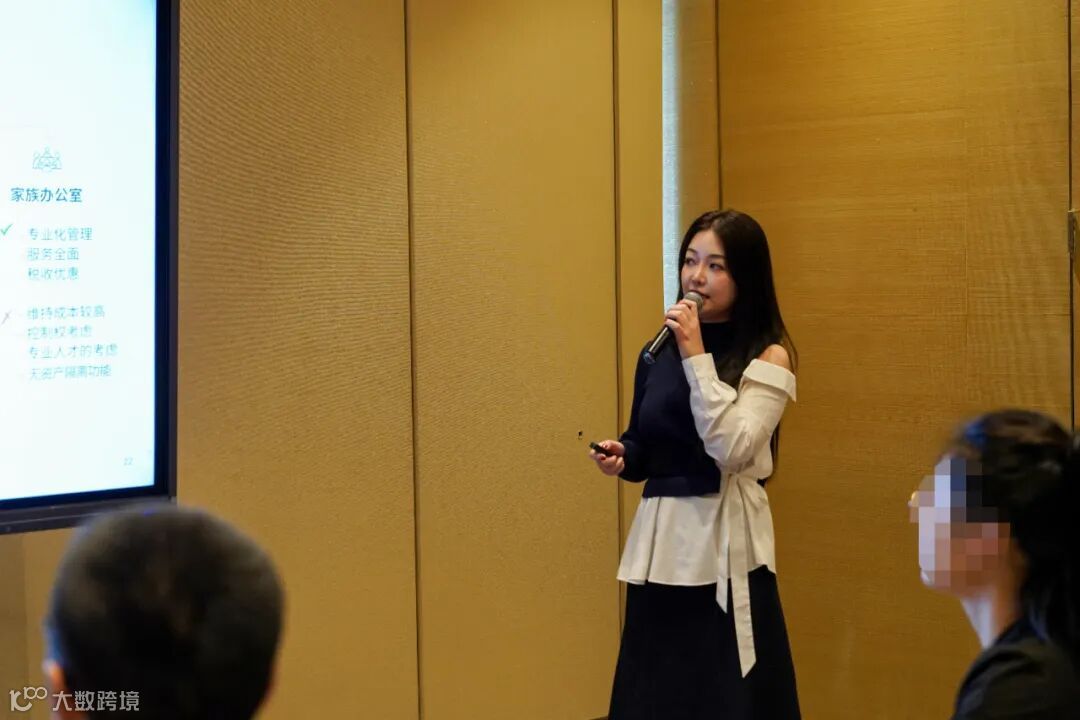 随后,大东方集团高级执行经理吴燕女士为大家带来了“家族财富管理与信托介绍”的专题分享。吴女士结合新加坡的财富管理经验,详细介绍了如何构建高效的家族财富管理系统,精准应用各类财富工具,特别是与家族信托相结合的策略。