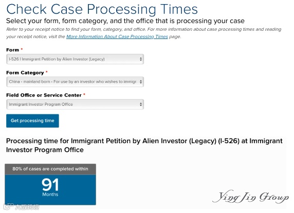 中国及其他有排期国家:80%的I-526申请需要91个月(约7年半)才能获批。优先日为2016年10月10日的申请人,下个月才能联系移民局催办。