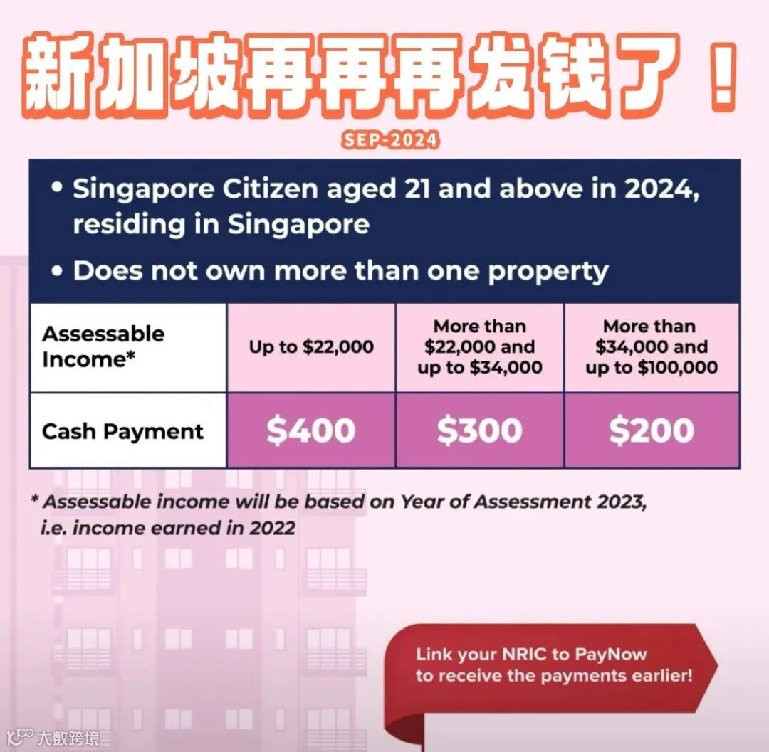 根据2023年报税收入分别可以领取:200、300、和400新币。