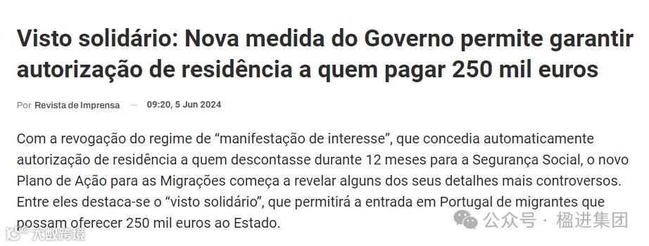 2024年6月5日据葡萄牙新闻媒体报道,葡萄牙新任政府揭晓了一项激动人心的《移民行动计划》,其中尤为引人注目的是一个全新的“融入”黄金签证(Visto Solidário)计划。这一创新的签证模式不仅体现了葡萄牙在移民政策上的前瞻性和灵活性,更是葡萄牙作为欧洲门户的独特优势的完美展现。