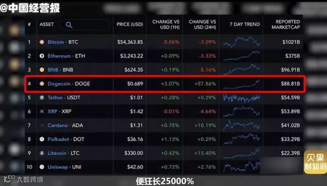 正所谓,币圈一天,A股十年!仅看狗狗币(DOGE),在过去六个月便狂长25000%。
