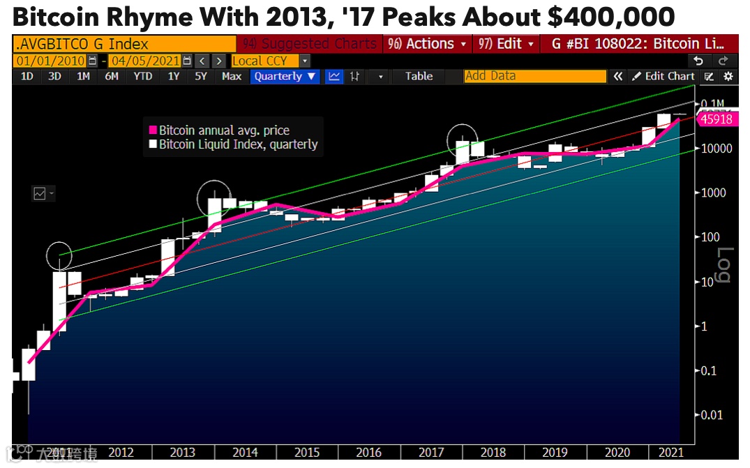 彭博社比特币分析师认为,比特币价格今年可能会从约56000美元攀升至40万美元。这一超级乐观的预测是基于2017年和2013年牛市期间比特币的表现做出的。