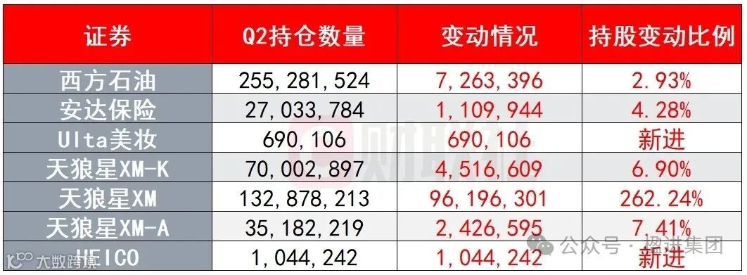(伯克希尔Q2主要增持股票,图源:财联社)