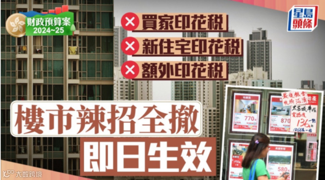 立法会上陈茂波宣布:即日起撤销所有住宅物业需求管理措施,即由28日起所有住宅物业交易无须再缴付额外印花税、买家印花税和新住宅印花税。