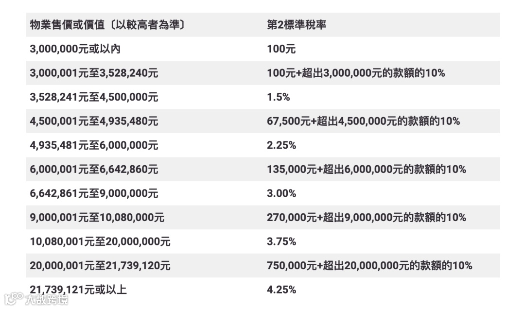 现在,无论是海外买家、公司买家,又或是想购置第二套房的买家,都和香港本地首置买家一样,只需要缴交从价印花税。下列为目前最新的从价印花税标准,根据物业的售价或价值,从100元到4.25%不等: