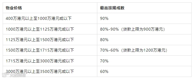 01、价值3,000万港元或以下的自用住宅物业的按揭成数上限调整至70%;价值3,500万港元或以上的自用住宅物业的按揭成数上限调整至60%。为了避免适用按揭成数出现骤降情况,价值3,000万至3,500万港元之间的物业的按揭比率会以渐进形式递减。此外,非自用住宅物业的按揭成数上限由50%调升至60%。