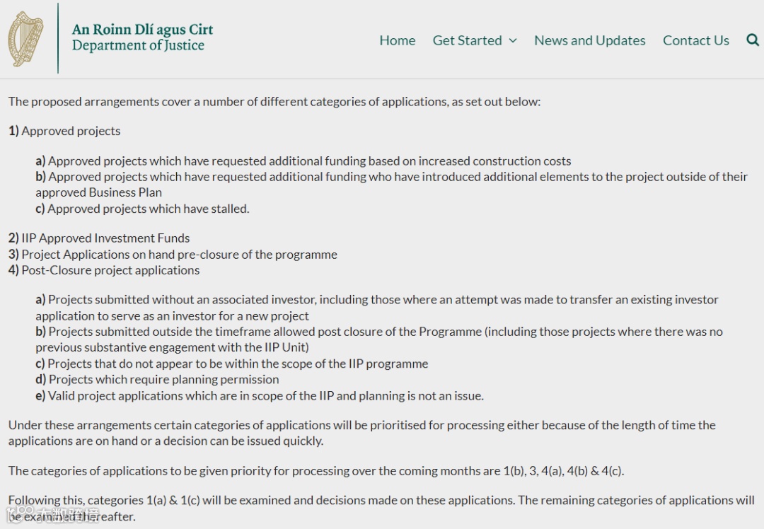爱尔兰司法部就爱尔兰投资移民计划(IIP)关停后,首次发布了最新审理安排。