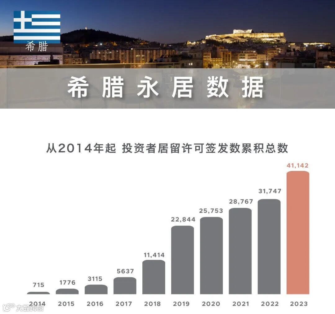 希腊移民局官方数据:截止2023年12月希腊累计向41,142位申请者发放黄金居留许可,全年增长30%。
