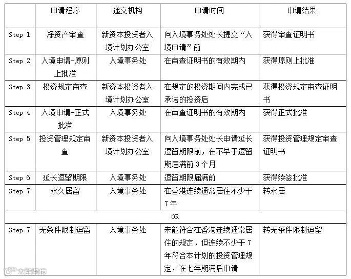 新资本投资者入境计划办公室专责统筹有关申请的财务审查事宜,包括净资产审查、符合投资规定和投资管理规定的审查;入境事务处则负责审批根据本计划所提交的签证/进入许可、延长逗留期限和无条件限制逗留的申请。