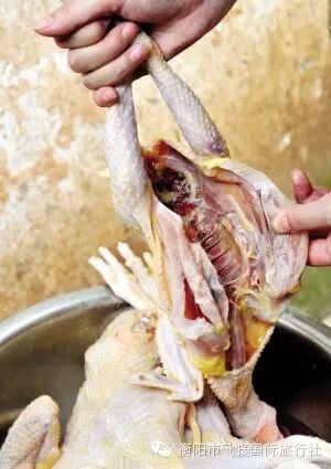 2、鸡的表皮和内部需用小刀划开数道口子,方便调好的辣椒酱入味。