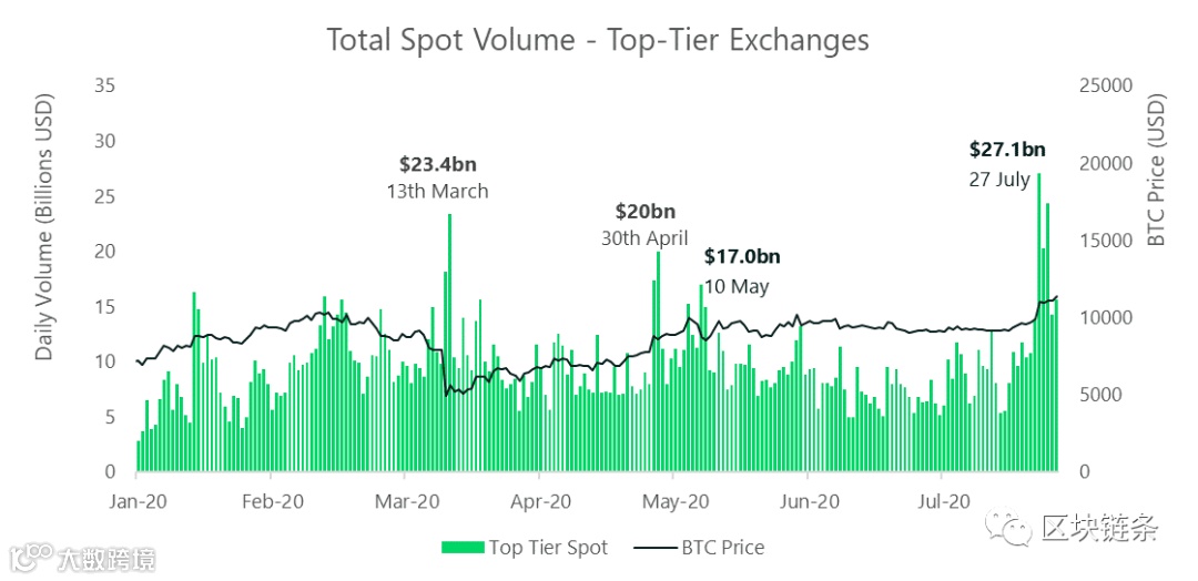 今年7月,头部交易所增长42.1%,至3340亿美元,而小交易所下降38.1%,至2240亿美元。头部交易所现在占到现货交易总量的60%。”