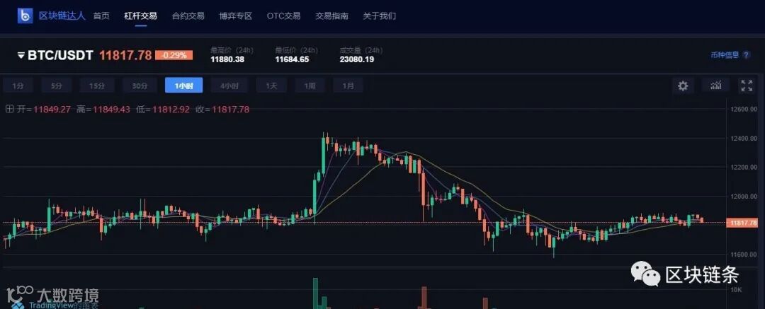 区块链达人Coinicle-BTC 1小时K线(14:43),报价11,817.78美元,日内跌幅0.29%。