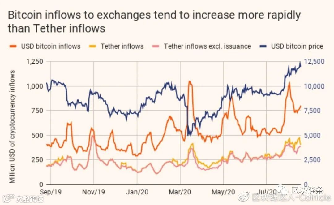 Chainalysis认为,法币进场的买气才是支撑比特币的关键,而泰达币增发稀释了法币流入交易所的规模,放慢了比特币近来的上涨趋势。