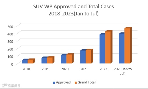 其中,2021年甚至达到破记录的96%SUV工签批准率。到2022年,420份申请中的382份获批,获批数占90.95%。