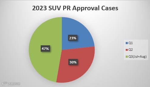 同时,加拿大SUV项目批准数也保持每月持续增长。在2023年的前三个季度中,第一季度获批数为150份,第二季度增加到190份,到第三季度的前两个月中,更增加到了305份。