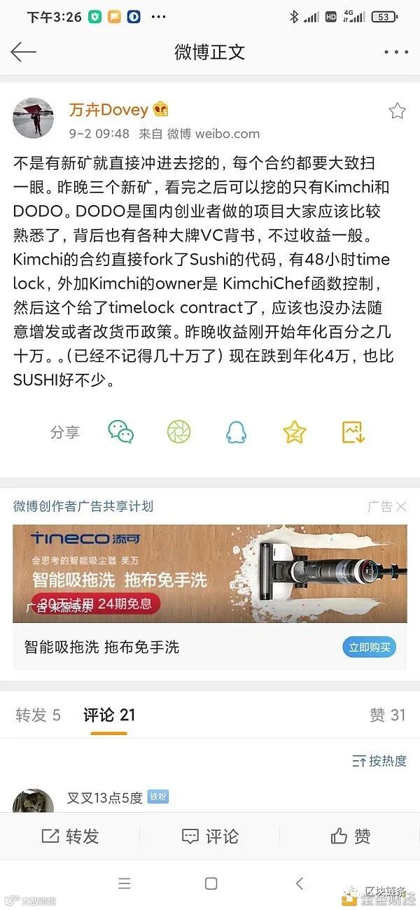 看样子,出走的流动性只是DEX战役的开始。需要指出的是,Sushiswap是基于UniswapV2开发的,UniswapV3已经在筹备中,Sushiswap不仅要留意被自己的模仿者,也将要面对UniswapV3。
