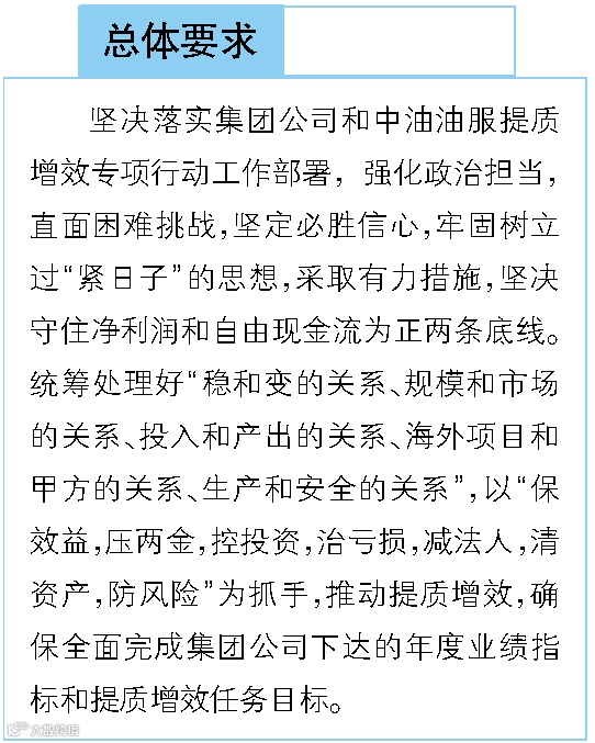 中国石油长城钻探为全面贯彻落实集团公司和中油油服提质增效专项行动工作部署,积极应对新冠疫情和低油价冲击,最大限度消化市场剧烈变化带来的不利影响,坚决打赢疫情防控阻击战和效益实现保卫战,经公司党委研究决定,制定本实施方案。