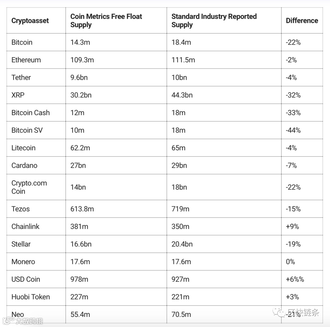 以太坊(ETH)的流通量似乎相对准确,相差只有-2%,而门罗币(XMR)的流通量几乎是准确的。