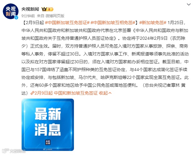 截至目前,中国已与157国缔结了涵盖不同护照种类的互免签证协定,与44个国家达成简化签证手续协定或安排,与包括新加坡、马尔代夫、哈萨克斯坦等22个国家实现全面互免签证。
