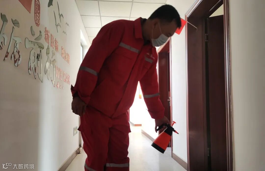 为对疫情严防紧控,人员抵达项目后,由党员、干部、青年员工等组成志愿者服务队,对项目厂区内外及员工宿舍、厨房等工作和生活区进行了卫生清理和消毒作业;指定专人每天负责对全体人员进行体温检测和登记;将公司配发的疫情防护用品发放至每名员工;对人员出入进行严格把关,做到管好人、看好门,禁止除工作原因外的外出;餐饮方面,严格实行分餐制,阻断可能传染途径,确保饮食安全。