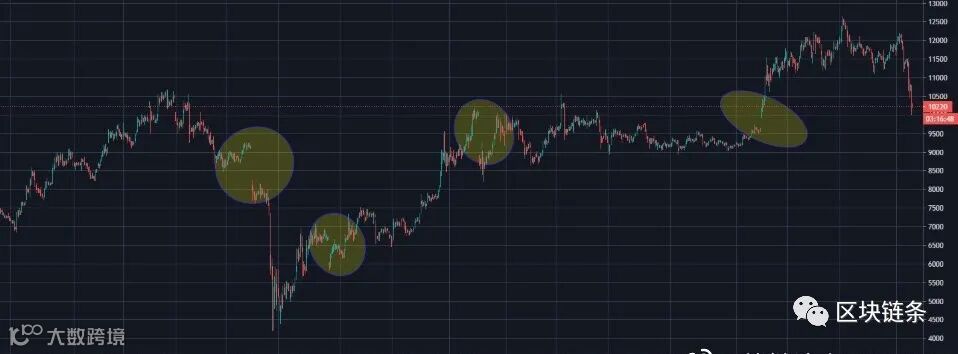 会产生芝商所缺口,是因为该交易所会在六日休市,一般比特币市场没有休市这回事,因此两个市场间会出现价格差距。历史数据显示,比特币市场通常会在格周一补齐这个缺口,如下图所示:
