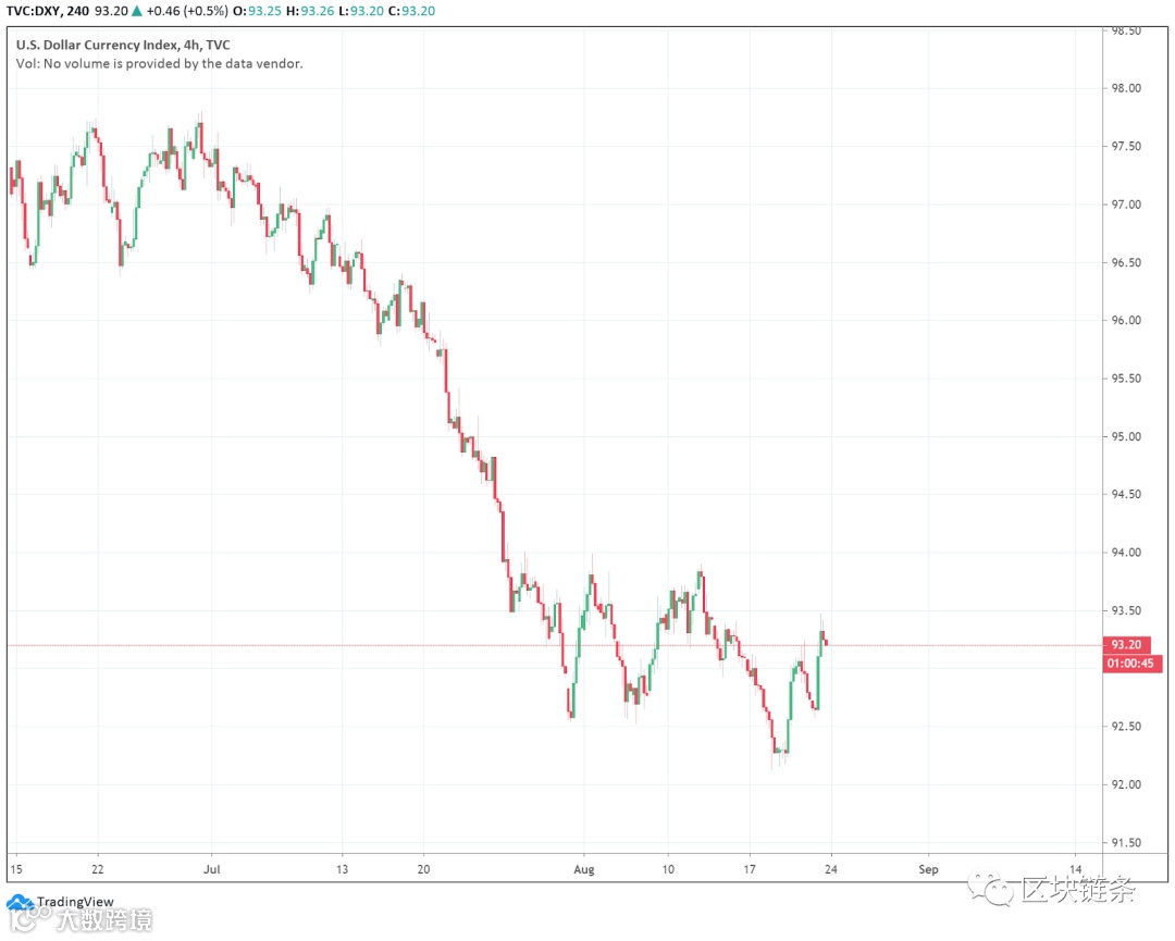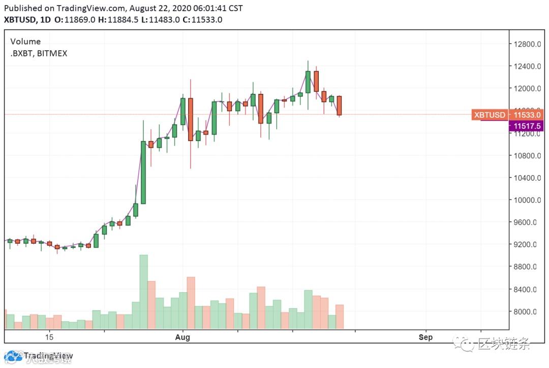 8月21日,比特币(BTC)价格下跌超过3%,从约11880美元跌至11511美元。巧合的是,美元指数(DXY)开始从4个月的低迷中反弹。