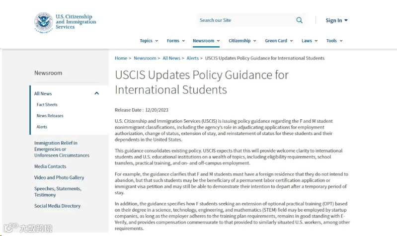 12月20日,美国移民局(USCIS)正式发布有关F类和M类学生非移民签证的相关政策指南,包括了现有移民政策在申请要求、转学、实习培训、校内外就业等相关议题。