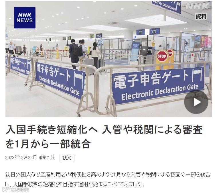入境日本又传来好消息!!据日本NHK22日报道,为了能给访日外国人提供更多便利,日本政府计划从明年1月起,将出入境审查和海关审查的一部分进行合并,目的是简化入境手续。