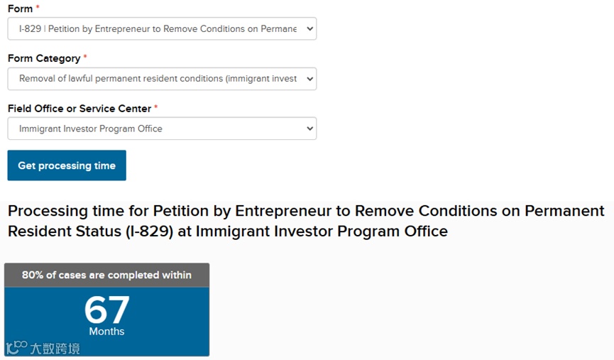 I-829的审理时间也不太乐观。在过去的六个月,处理完80%的投资人I-829申请耗费的时间则为67个月(5年7个月)。