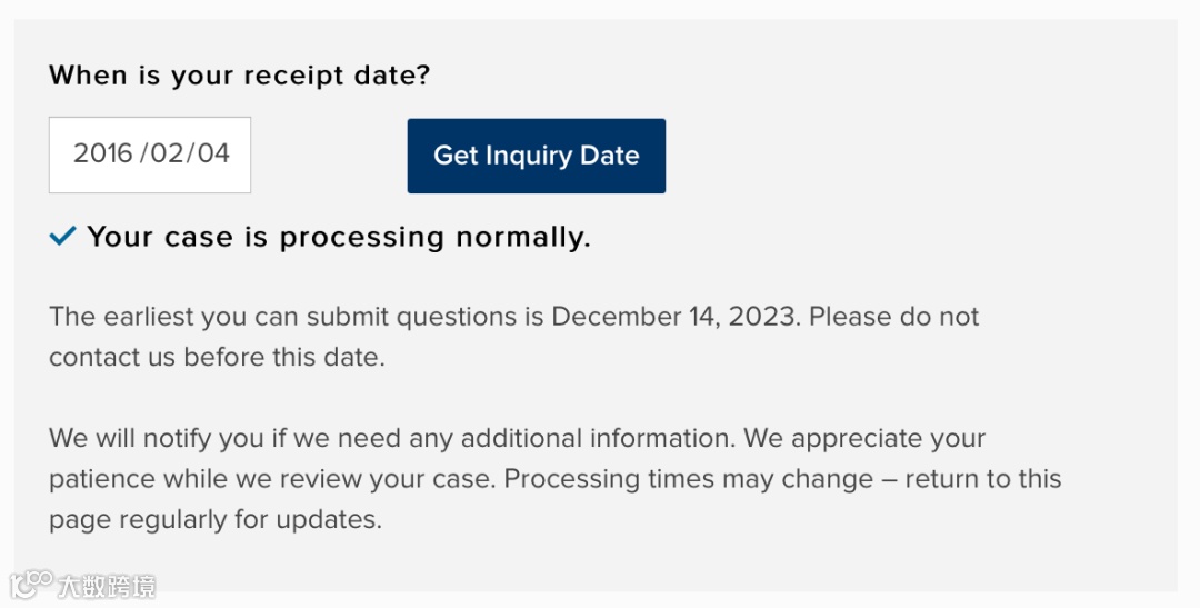美国移民局只允许对超出上述处理时间的案件进行咨询。申请人可以通过输入自己的优先日期,查询自己是否可以联系移民局,进行案件进度的咨询。