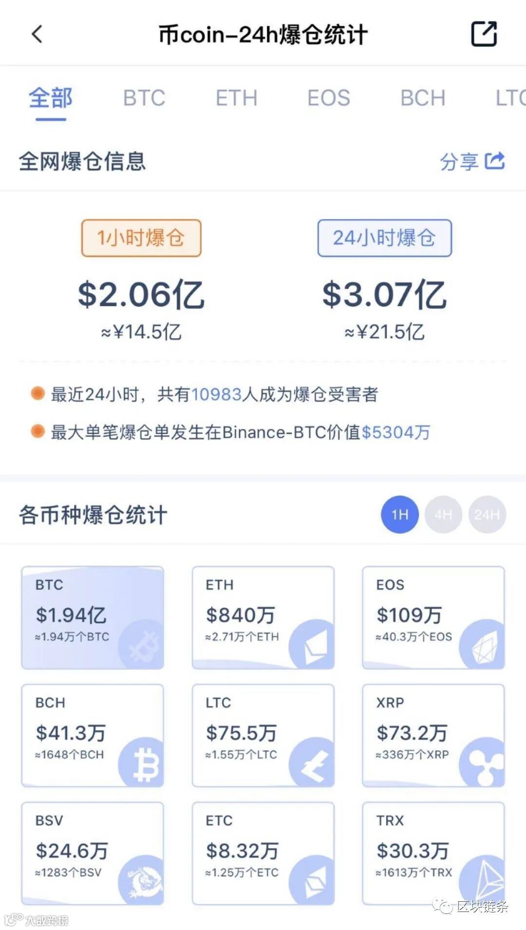 全网半小时爆仓2亿美元,爆仓人数10983人