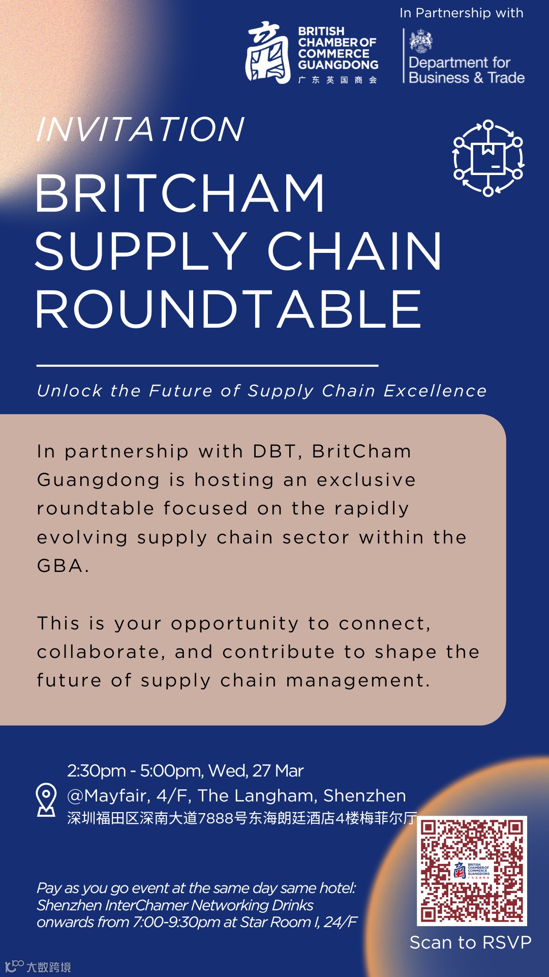 In partnership with DBT, BritCham Guangdong is hosting an exclusive roundtable on Wednesday, 27 March, focused on the rapidly evolving supply chain sector within the GBA.