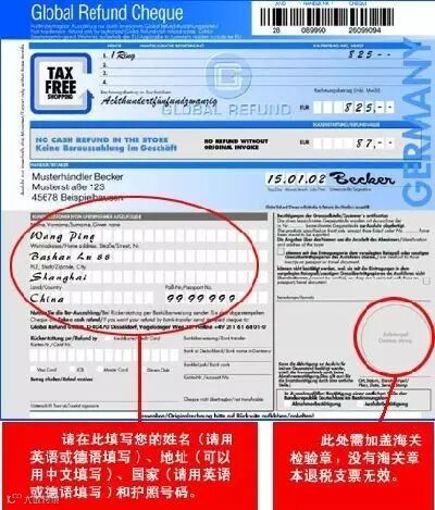 支票退税:将填好的单据寄回出境国相关部门,海关人员核实后邮寄退税支票,需支付邮资及货币转换的手续费,耗时较长。