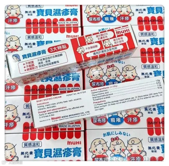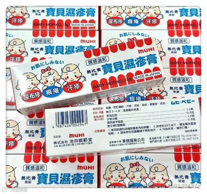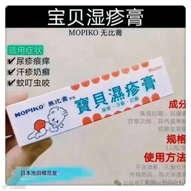 MOPIKO宝贝湿疹膏15g无比同厂,性质温和安全。宝宝容红易屁股、长湿疹,奶癣,皮疹,热痱子,尿布疹,荨麻疹,皮炎,冻伤,蚊虫叮后咬的止痒去印都很有效果。避免搔抓,不要吃辛辣刺激性食物,坚持使用湿疹膏涂抹治疗,防止转变为慢性湿疹。湿疹膏是一种常用的药物,这种药物对于治疗湿疹效果不错的,湿疹膏里面是不含有激素的,可以放心使用的。