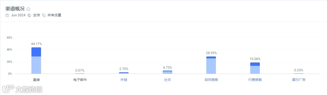 根据similarweb数据显示,Nkuku官网的流量主要来自于直接访问流量(44.17%)、自然搜索流量(28.95%)、付费搜索(19.08%)。