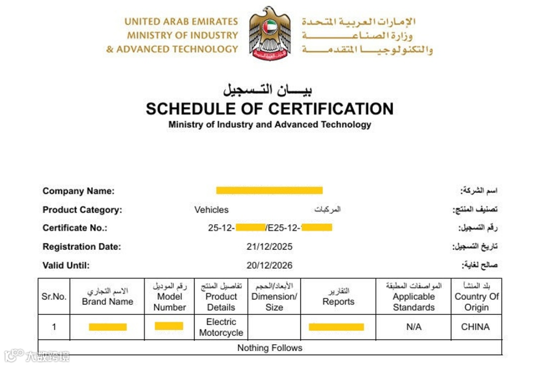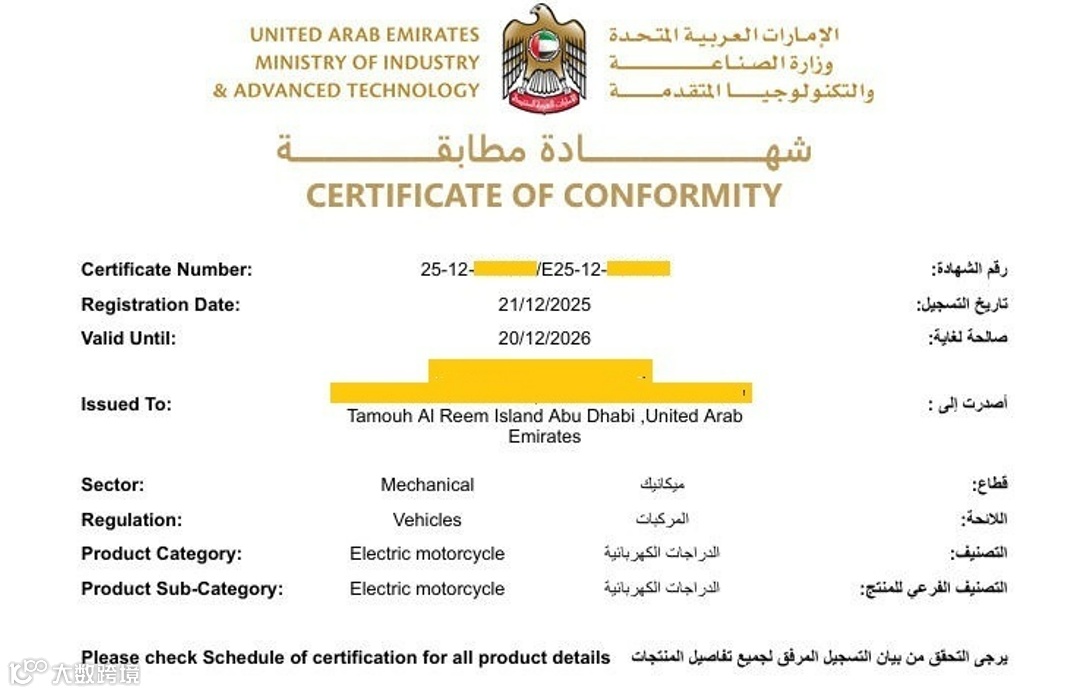 此次ECAS证书的成功获取,标志着该企业产品已通过阿联酋官方认可的技术审核与符合性评估,具备合法进入阿联酋市场的合规基础,同时也验证了前期在法规研究、测试报告及技术文件准备方面的完整性与一致性。