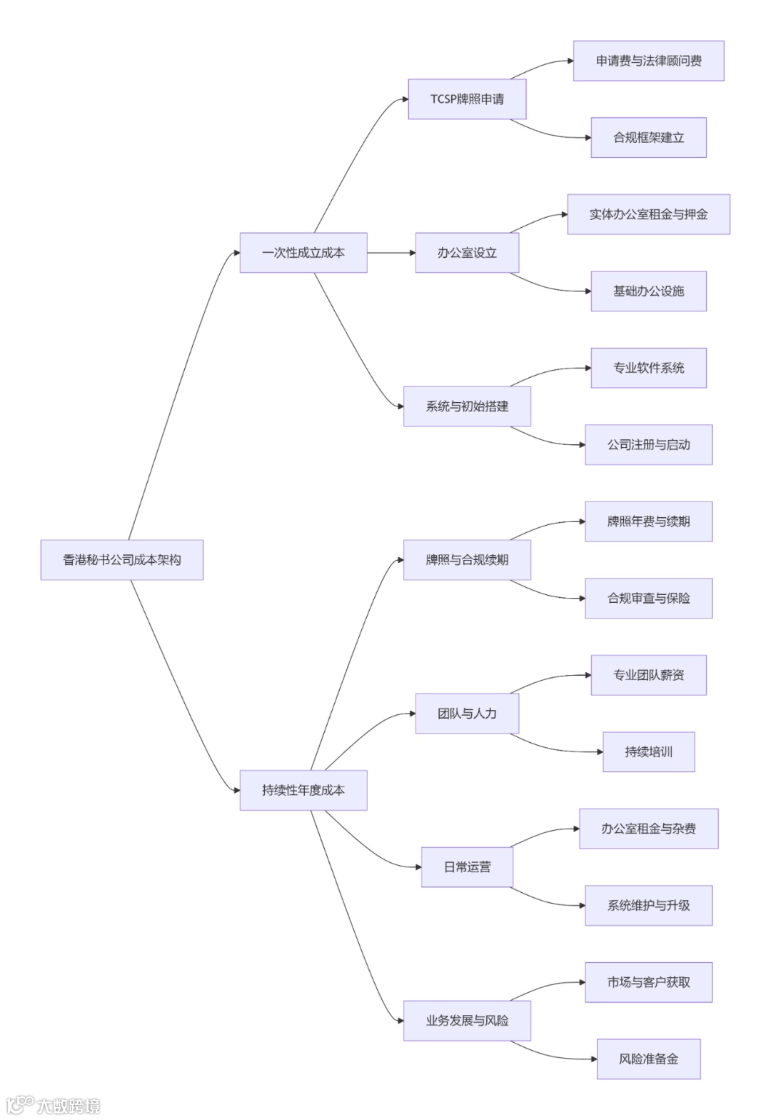 一次性投入:TCSP牌照申请费、法律顾问费、办公室装修与押金、初始系统搭建费。