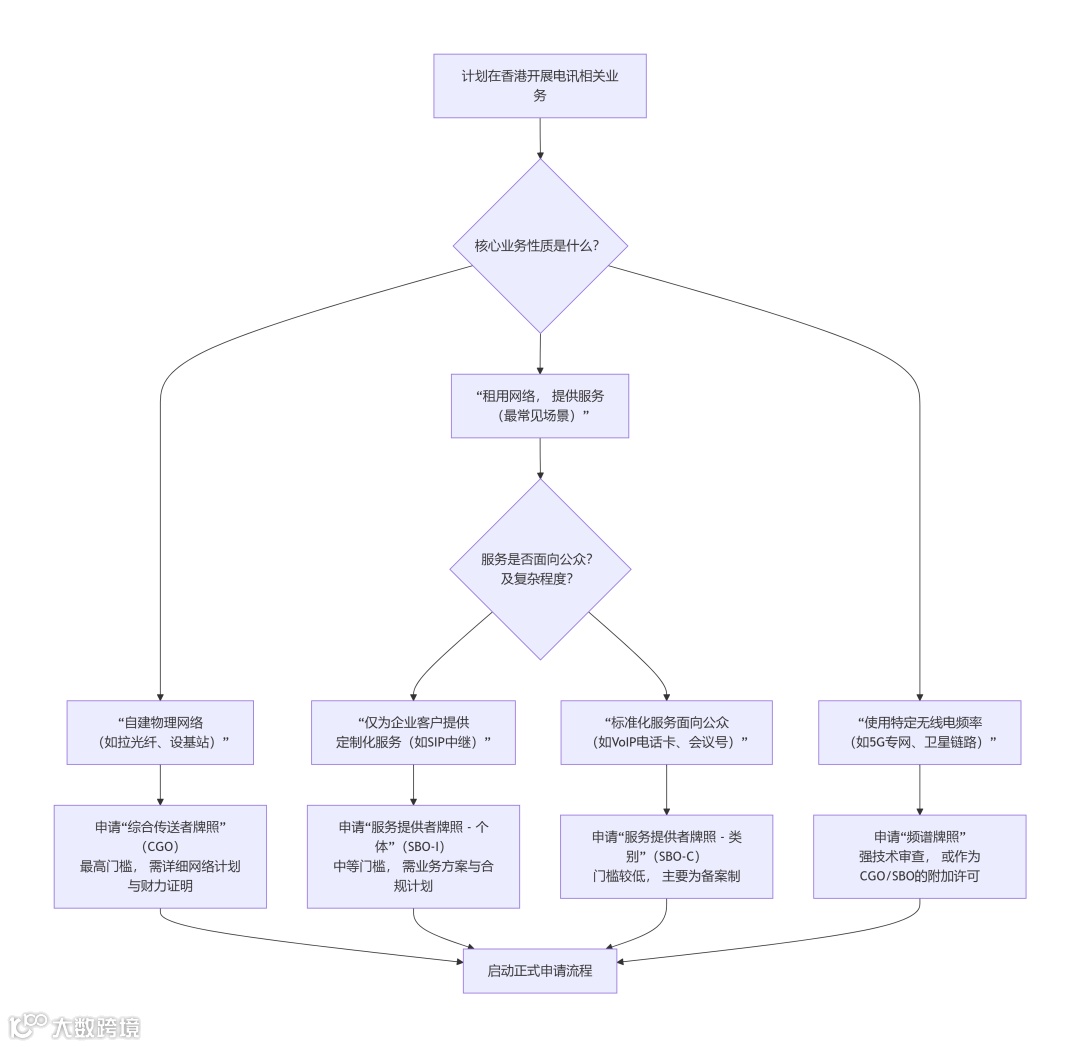 香港电讯牌照体系的核心逻辑是 “行为监管”。你需要开展什么业务,就申请对应层级的牌照,监管强度和成本随之递进。