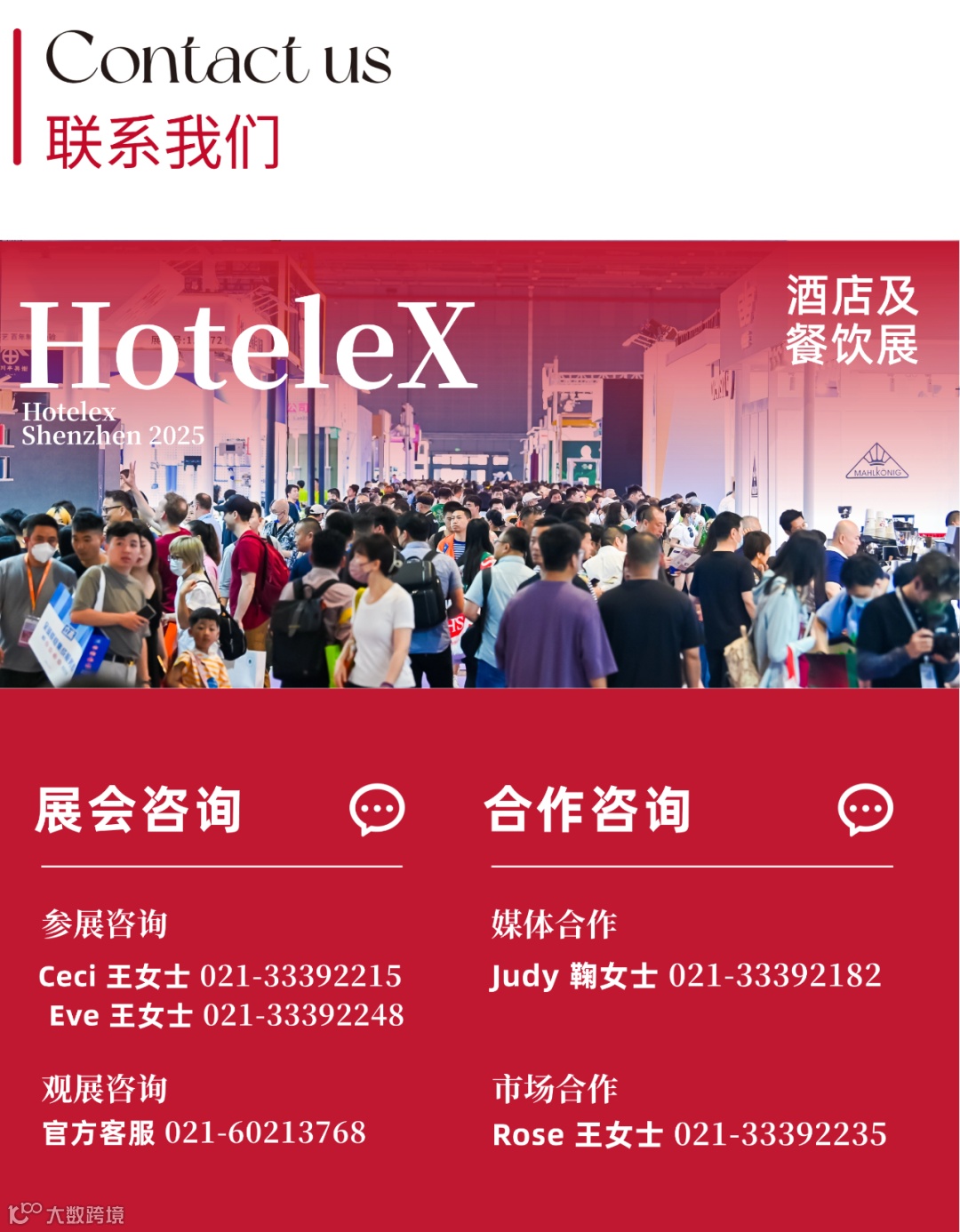 在此行业升级浪潮下,第三十四届HOTELEX上海国际酒店及餐饮业博览会将成为重要的商贸交流载体——展会将于2026年3月30日-4月2日在国家会展中心(上海浦西·虹桥)举办,预计规模达40万平方米,吸引超过30万位来自酒店餐饮、商超零售、休闲餐饮等多渠道的专业观众,汇聚3000余家展商,展品全面覆盖酒店与餐饮产业供应链各环节,为全球餐企搭建开放高效的交流平台。