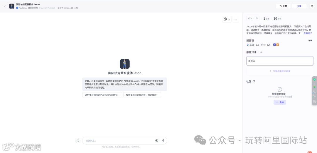 3.目前我做的这个A智能体还在测试阶段,但是写标题关键词是够了,慢慢增加内容吧。