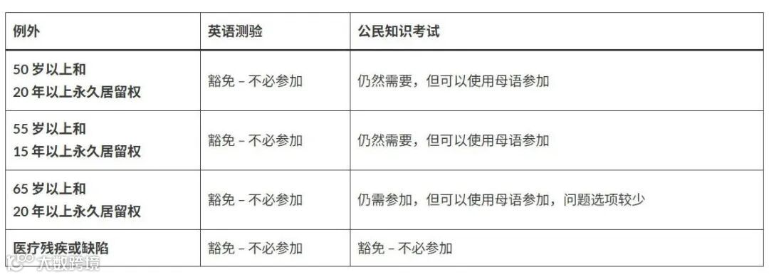 老年申请人仍可享受特殊优惠考量。年满65岁且是至少20年的合法永久居民(绿卡),仅需准备128个问题中已被挑选(用星号*标记)的20道题,并可自己选择语言、通过翻译应试。移民官从这20题中提问10个问题,申请人答对6个就可获得通过。
