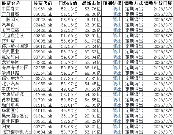 剔除门槛同步上调至58亿港元