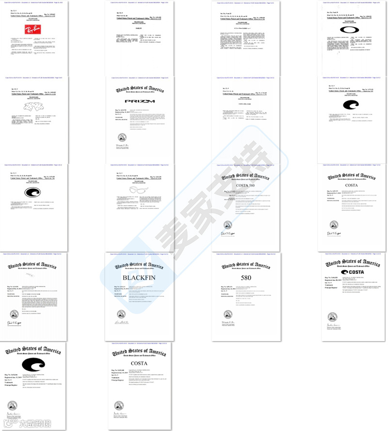 RAYBAN 太阳眼镜始创于 30 年代,专为美国空军而打造,用以抵御高空那猛烈的光线。OAKLEY欧克利更是被公认为在性能技术和时尚领域处于顶尖行列的品牌之一。COSTA 是全球著名的咖啡品牌,自 1971 年在伦敦创立以来,不断地推陈出新。本月,RAYBAN(雷朋)、OAKLEY(欧克利)以及 COSTA(咖世家)一同登上维权舞台,STEPHEN M. GAFFIGAN, P.A受委托再次开启维权行动。卖家支持提醒广大跨境卖家,本次涉及的涉案商标及专利多达几十张,各位卖家速速自查,一旦未经授权就使用,将会面临 TRO 侵权的风险。
