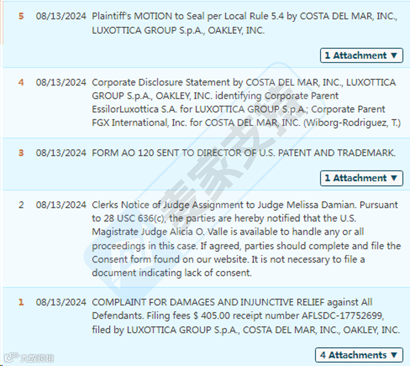 | 24-cv-61475 | 2024-08-13 | STEPHEN M. GAFFIGAN, P.A. | RAYBAN&OAKLEY&COSTA,雷朋&欧克利&咖世家 |