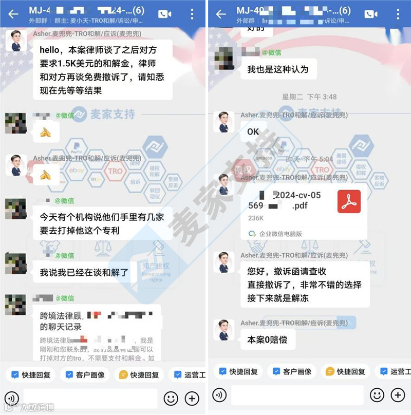 不是标题党!麦家支持最新0赔偿,免费撤诉案例出炉,历时9天,帮客户挽回1.5w损失!这样的结果面前,又何须费时费力去请律师应诉!还在为该案件TRO苦恼的卖家速上车!