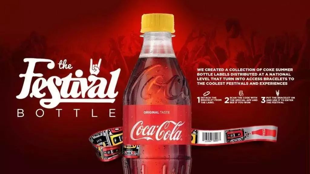 ✅音乐节手链瓶:罗马尼亚音乐节期间,瓶身标签可撕下制成手环作为入场凭证,实现产品与体验的无缝衔接。
